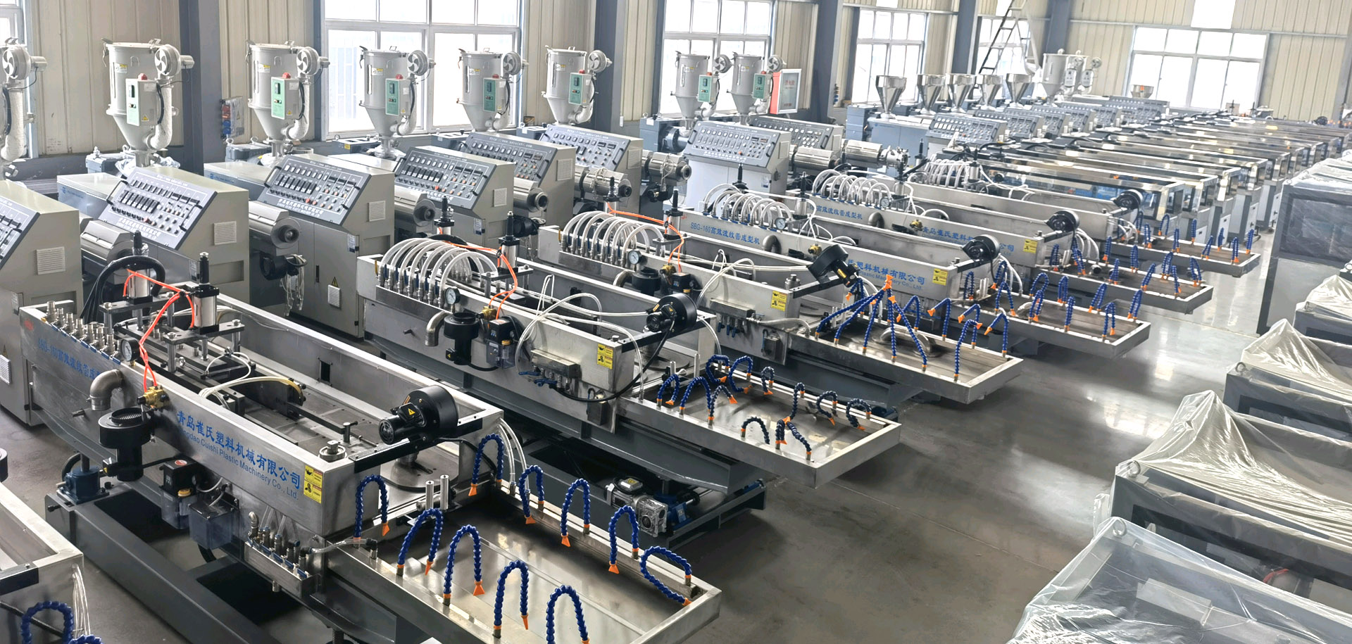 青島崔氏塑料機械有限公司位于青島膠州市膠西工業(yè)園區(qū),香港路與同三高速交匯處,距膠東國際機場20多公里,地理位置便利,占地面積20000多平方米,是一家集生產(chǎn)與研發(fā)各種塑料制品設備的環(huán)保型企業(yè)。我公司主營預應力波紋管設備、雙壁波紋管設備、電力管設備、塑料波紋管設備、汽車線束波紋管設備、PPR、PE、PVC、PERT管材設備及其它各種管材設備、塑料型材設備、塑料蜂窩板設備。公司技術力量雄厚,開發(fā)能力強,生產(chǎn)工藝先進,以開發(fā)新材料,研制新工藝為基礎生產(chǎn)各種塑料擠出設備。公司產(chǎn)品遍布全國各地,并且遠銷歐州,獨聯(lián)體,南美洲,中東,東南亞,大洋州,非洲等許多國家和地區(qū)。